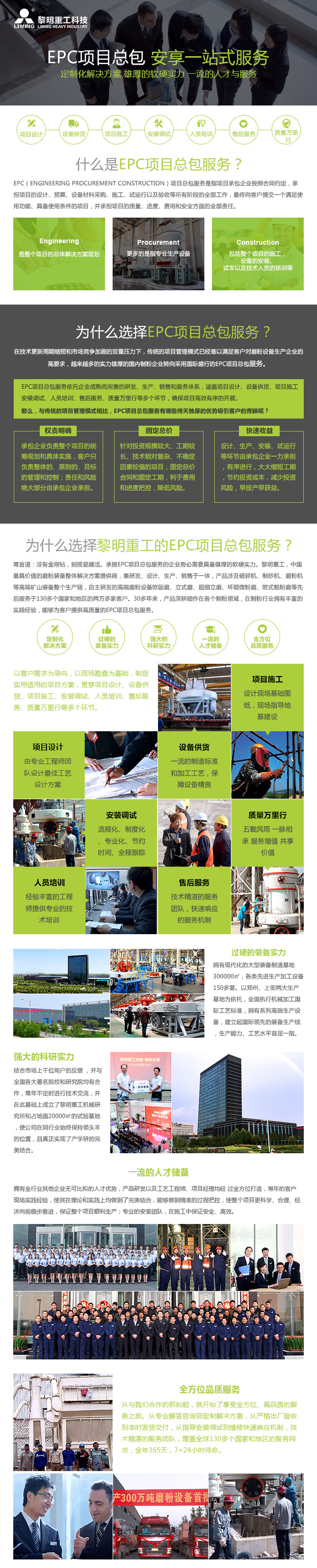 常言道:沒有金剛鉆,別攬瓷器活。承接EPC項(xiàng)目總包服務(wù)的企業(yè)需要具備雄厚的軟硬實(shí)力。黎明重工,中國頗具價值的磨粉裝備整體解決方案提供商,集研發(fā)、設(shè)計、生產(chǎn)、銷售于一體,產(chǎn)品涉及破碎機(jī)、制砂機(jī)、磨粉機(jī)等礦山裝備整個生產(chǎn)鏈,自主研發(fā)的磨粉設(shè)備歐版磨、立式磨、超細(xì)立磨、環(huán)輥微粉磨、歐式粗粉磨等先后服務(wù)于130多個國家和地區(qū)的兩萬多家客戶。30多年來,產(chǎn)品深耕細(xì)作在各個制粉領(lǐng)域,在制粉行業(yè)擁有豐富的實(shí)踐經(jīng)驗(yàn),能夠?yàn)榭蛻籼峁└哔|(zhì)量的EPC項(xiàng)目總包服務(wù)。