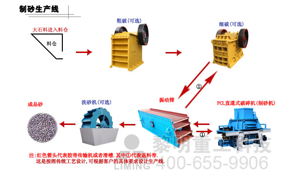 想要進軍砂石業,制砂設備必不可少。河南黎明重工科技根據市場需求研發生產了5X新型制砂機、VSI制砂機、PCL直通沖擊式制砂機等制砂設備,又根據不同的工藝要求,對各種型號的設備進行組合,配置了機制砂生產線和碎石生產線,滿足客戶的不同工藝要求。在整套設備的工藝流程設計中,各級破碎設備匹配合理,空間交叉布局嚴謹,具有占地面積小,投資經濟效益高,碎石料品質好,石粉產出率低等的特點,整個流程出料通暢,運行可靠,操作方便,節能,在砂石行業中廣為應用。
