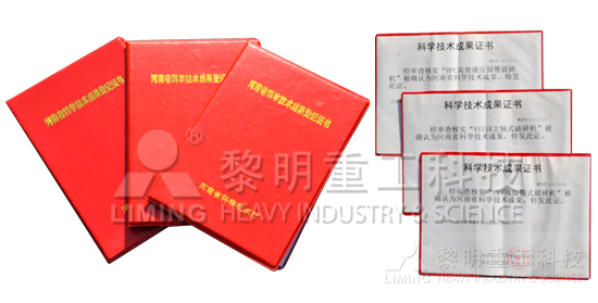 2012年10月,黎明重工科技產(chǎn)品系列再創(chuàng)佳績(jī),經(jīng)河南省科技廳專家評(píng)審,HPC液壓圓錐破、VSI離心沖擊破和歐版顎式破碎機(jī)榮獲科技成果證書。